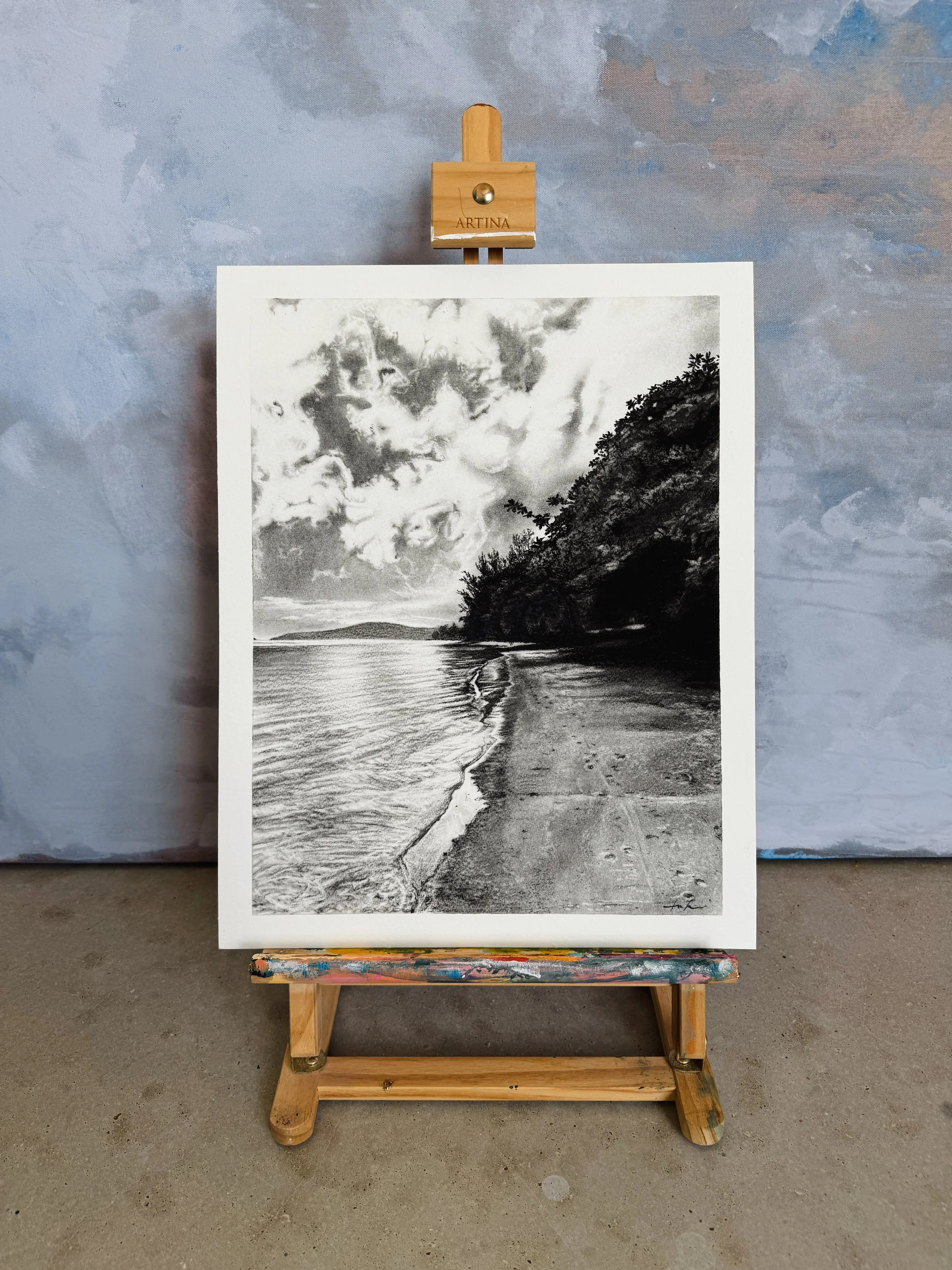 I am constantly experimenting with new mediums and techniques, though my current focus is charcoal. I find comfort in black-and-white imagery and am especially interested in refining technique while exploring texture and depth through this medium. I photograph distant places and use these images as references for my work.