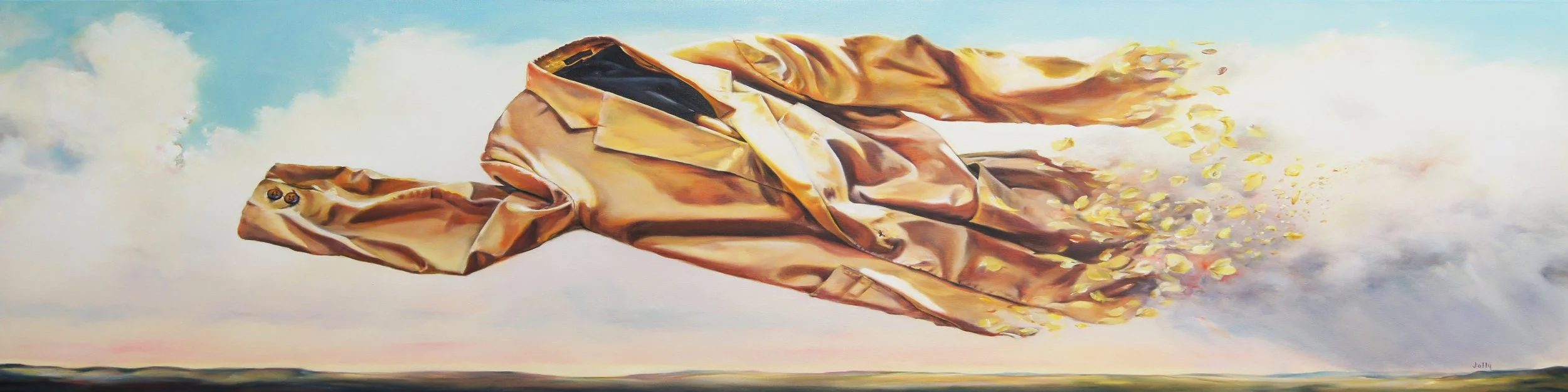 In a sort of quasi-surrealist style I call “Contemporary Narrative Realism”, my paintings tell stories by blending representational content with stylistic adventurism. Think Dali meets modern Rockwell. My recent work includes tactile and dimensional elements acquired through various life endeavors integrated with the painted canvas. I used to think of my paintings and dimensional works as sort of separate movements, but over time they began to reflect and feed off one another to the point where now most of my work employs multiple media, in multiple ways. Stylistically, the influence of my career as a graphic designer shows up in the composition and intentionality with which I approach content, sometimes borrowing elements of the designer’s craft like typography to help tell a story. My figurative subjects—often children or animals because of their almost complete lack of guile—often appear in magically ethereal environments that allow their metaphysical essence to seep out of their physical presence. Their lives and intrinsic beauty inspire and humble me, constantly reminding me of the synchronicity of all things under heaven with heaven itself.